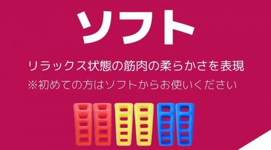ソフト(初心者・リラックス用)から、徐々にレベルアップできるカラー別展開。※初めての方はソフトタイプがおすすめです。